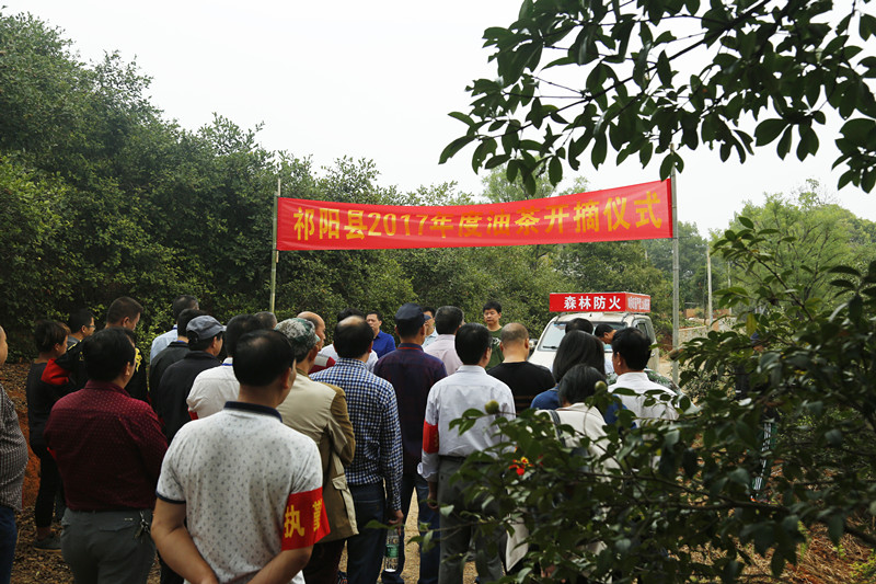 10月8日,祁阳县2017年度油茶开摘仪式在该县大村甸镇五塘冲村油茶基地举行。县委副书记陈小平、副县长彭国锋、县政协副主席陈振文等县级领导,以及县委办、县政府办、县林业局、大村甸镇村两级党员干部和群众一道参加了开摘仪式。随着县委副书记陈小平一声令下,该县2017年度油茶收摘工作正式拉开序幕。